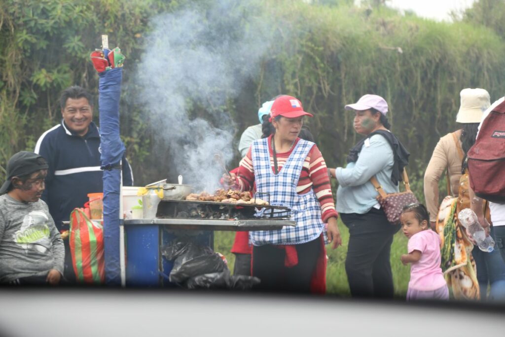 Como todo placer, no podía faltar la comida típica de la Sierra: fritada, hornado, empanadas de morocho. Algunos vendían asados, costillas al barril.